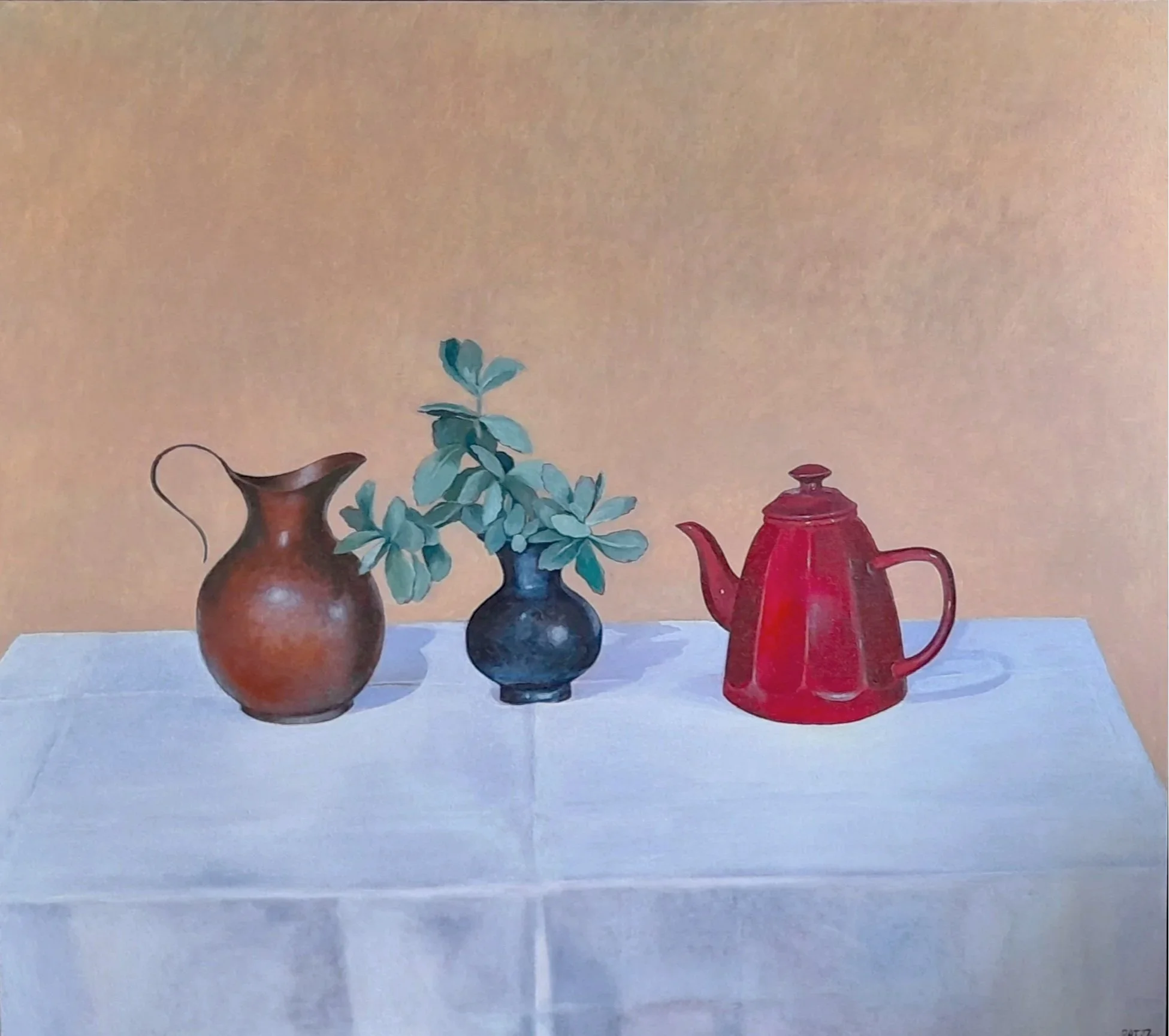 Patterson is a painter who has also dedicated the past twenty years to teaching art and curating exhibitions. Her work is about clear choices; creating arrangements of objects that have been selected for their color and the meaning they generate in proximity to one another. She often includes references to the history of art, suggesting the constant presence of the past in shaping the present. Like words in poetry, the carefully chosen objects have been contemplated to generate meaning for the viewer, often with ironic or unexpected outcomes.